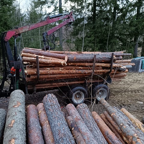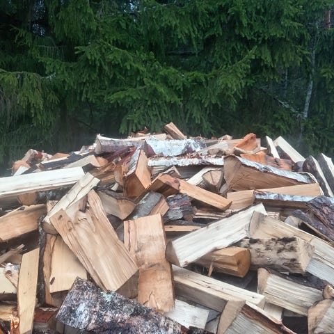 Puut kaadettu tammi-maaliskuussa 2025, ja klapitettu säkkeihin huhtikuussa.