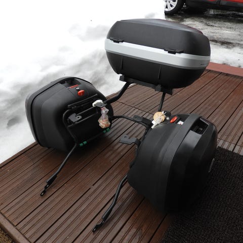 Laukut olleet tässä M-pyörässä, Honda 750cc NC . Tässä kuvassa ei takalaukkua.