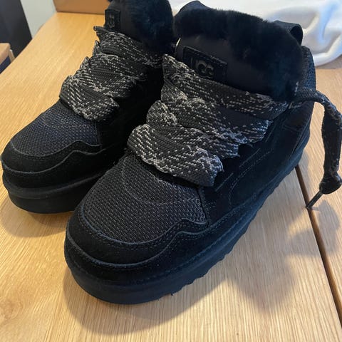 HALVALLA UUDET UGG LOWMEL talvikengät koko 40 musta. Vain kokeiltu jalkaan eivät sopineet tyttöystävälleni. Kengät on suunniteltu talvikäyttöön ja ne tarjoavat lämpöä ja suojaa kylmissä olosuhteissa. Materiaalina on käytetty mustaa nahkaa ja tekstiiliä. Kengissä on lämmin vuori ja kestävät pohjat, jotka sopivat talviolosuhteisiin.