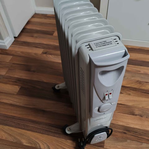 Viime vuonna prismasta ostettu öljytäytteinen lämmitin pyörillä. 3 tehoaluetta 600W, 900W ja 1500W. Mitat 40cm × 55cm. Kuljetus Kouvolan alueella onnistuu. Ovh 45,90