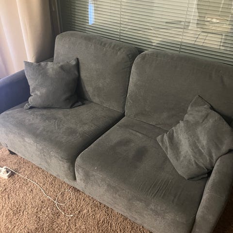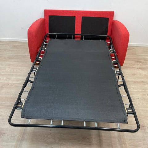 Tukeva Bellus 2 istuttava moderni vuodesohva harmaassa värissä. Tämä sohva tarjoaa mukavan istumapaikan päivisin ja muuttuu helposti kätevällä mekanismilla vuoteeksi öisin. Sänky 140cm x 195cm metalirungolla. Sen yksinkertainen muotoilu sopii monenlaisiin sisustuksiin. Sohva on hyvässä runkokunnossa, mutta siinä on käytön jälkiä istuinosassa. Kankaan väri on säilynyt hyvin, patjassa muutamia läiskiä.