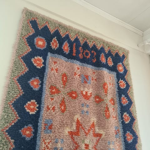 Myydään vintage Porin tienoot ryijy. On hyvin vanha, mutta siisti ja hyvä kuntoinen. Koko: korkeus 156cm, leveys 117 ja hapsut 16 cm.