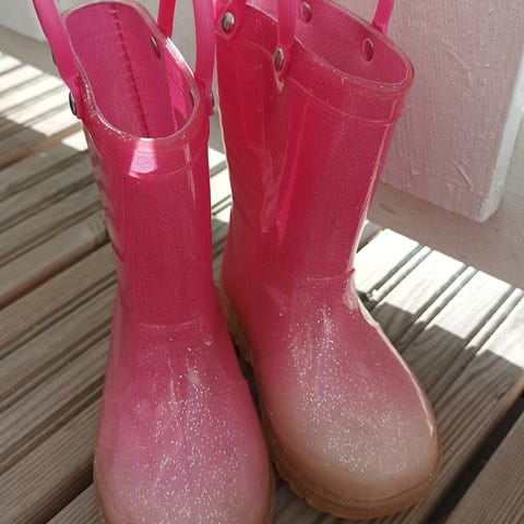 Myynnissä 2kpl Glitterisiä lasten kumisaappaita, olleet käytössä yhdellä lapsella ja kunto on kuin uusi.