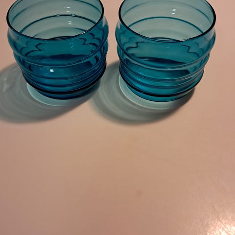 Kaksi Marimekon lasikulhoa. Halk. 12 cm.