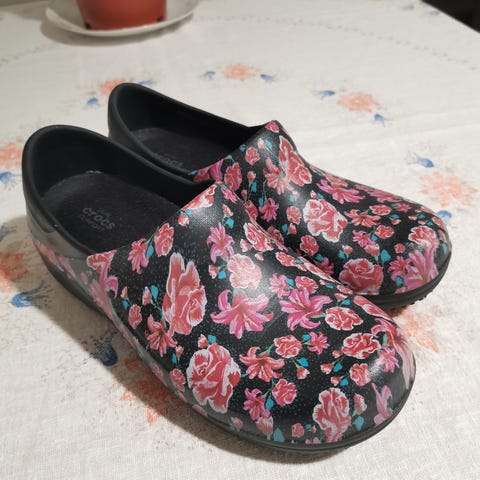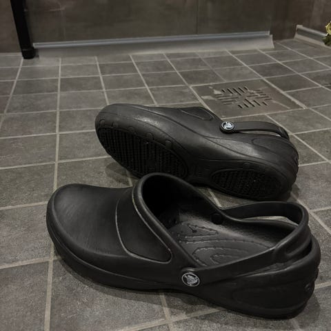 Mustat crocs bistro work kengät. Hetken käytetty ravintolatyössä. Sopii ravintola, hoitoalan työhön. Liukumaton pohja. Lisätietoja viimisessä kuvassa. Koko 39/40, crocs koko w7m9.