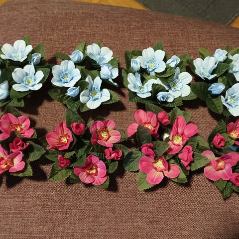 Upeat kynttilä mansetit joihin mahtuu esim Led pöytäkynttilät. Nouto tai kulkeutuu sovitusti omien menojen mukana. Voin myös lähettää kuluja vastaan matkahuollon kautta. Yhteishinta manseteille ja Led pöytäkynttilöille.