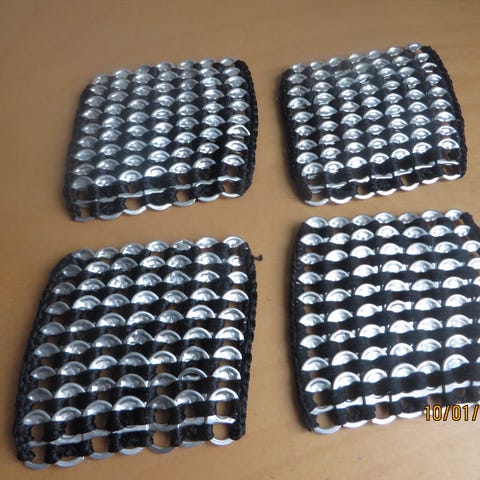 Myytävänä tölkkien nipsuista tehty kulho. Kulhon mitat: korkeus 6 cm ja ympärys noin 50 cm. Kulhon hinta on 2 euroa.