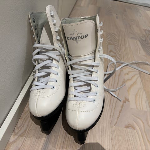 Lasten luistimet, koko 36, valkoinen väri. Sopii muun luistelun harrastamiseen.Suojilla vaatii teroituksen nouto .