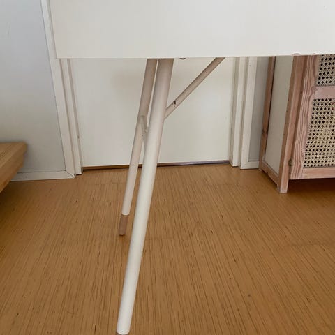 Pöytä on kunnoltaan hyvä, se on siro ja osoittautunut käytännölliseksi. Näyttää hyvältä myös silloin, kun työpäivä on ohi.