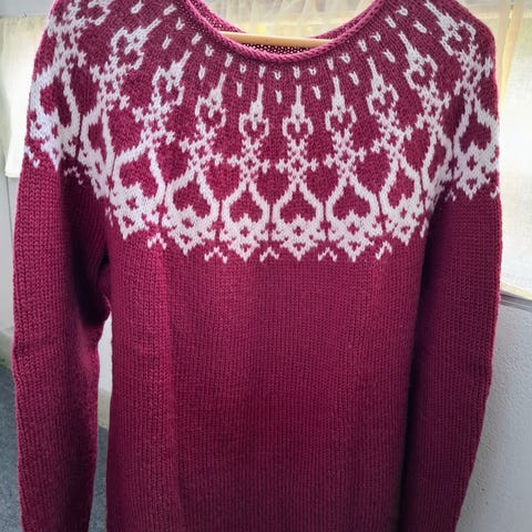 Drops Karismasta neulottu. Kainalo-kainalo 54cm olka-helma 68 cm kainalo- hihansuu 51 cm