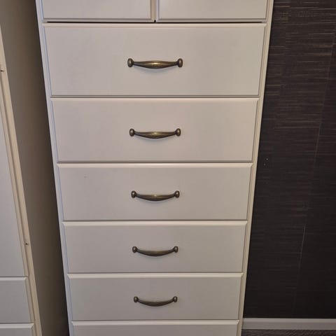 Siusti lipasto, yhdessä kulmassa pientä "nakerrusta". Ollut vaatehuoneessa käytössä.