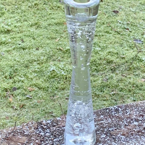 Iittalan lasinen Arkipelago kynttilänjalka, jonka korkeus on 8,5 cm. Suunnittelija Timo Sarpaneva.