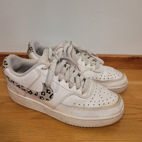 Valkoiset Nike Court -tennarit, koko 36. Hyvin siisti kunto. Pienet kulumat nauhojen vieressä reunassa, näkyy kuvassa.