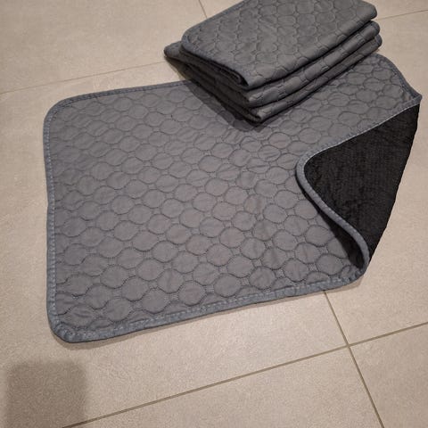 Myydään 6 kpl yhdellä pennulla olleita harmaita vedenpitäviä Drymate-pennun pissa-alustoja, pesty ehkä 2 kertaa. Alustan koko noin 70x90 cm. Uusien hinta 27,99 € / 2 kpl. Nyt nämä vähän käytetyt 8 €/kpl tai kaikki 40 €.