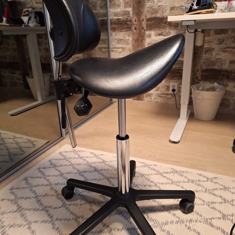 Myydään kaksi kertaa käytetty Humantool satulatuoli.