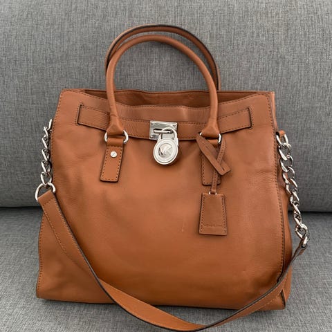 Isompi Hamilton hopeisilla yksityiskohdilla. Aito, kunnossa ei huomauttamista. Koko 32x36cm. Käsikahvat ja olkahihna sekä paljon sisätaskuja. Magneettisuljenta ja sisätaskussa vetoketju.