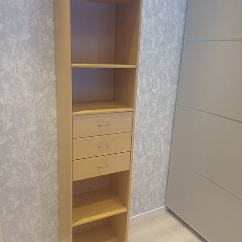 Annetaan pieni puinen kuvanmukainen seinähylly. Voi myös seistä lattialla (katso kuvat) seinää vasten. Poratut ripustusreiät. Ollut meillä lattialla. Oikein hyvässä kunnossa. Materiaali puuta, takaseinä on jonkinsortin ohutta vaneria tms, ei ole kovin painava.