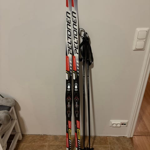 Myydään 135cm SNS sukset ja sauvat pidikkeillä .Muuten ok toinen sauvan renksu irti .Nouto. varattu