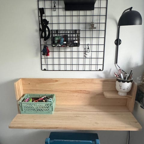Tyylikäs bambusta valmistettu seinään kiinnitettävä työpöytä.