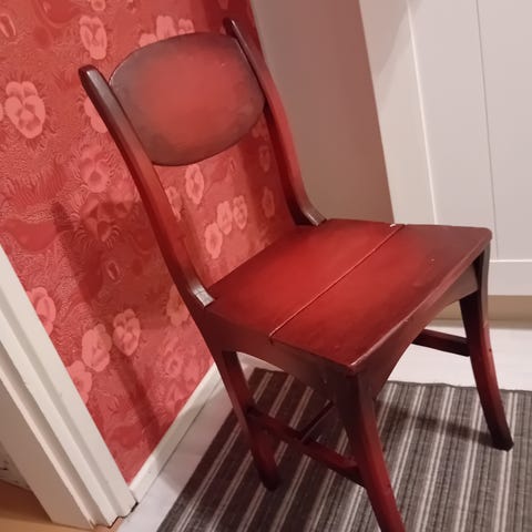 Tappiliitoksin ja puunauloin kokoonpantu talonpoikainen tuoli vuodelta 1835 - vuosiluku löytyy tuolista. Vanhat maalikerrokset poistettu, kaunis tällaisenaan, mutta valmis myös maalattavaksi. Alkuperäiskuntoinen, tukeva ja siisti. Leveys 41 cm, selkänojan korkeus 79 cm, istumakorkeus 42 cm, syvyys 40 cm, paino n. 7 kg. Aitoa, maanläheistä