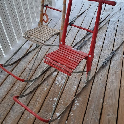 Matala potku kelkka. Käytön jälkiä on. Ehjä