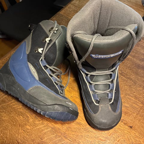 Käytön jälkiä ulkopinnassa. Kenkien etuosassa liimaus pieneltä matkalta irti. Ei haittaa käyttöä. Nouto Vermo / Mäkkylä.