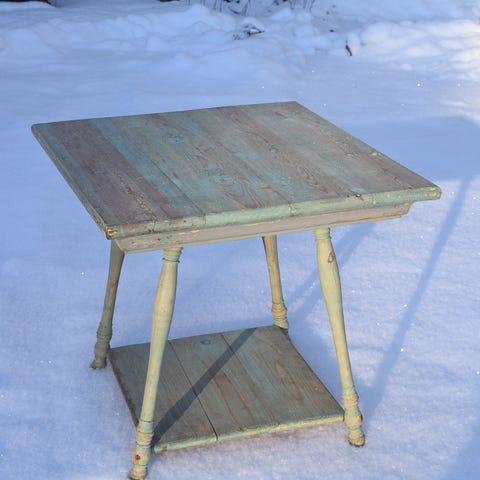 Siistissä alkuperäiskunnossa oleva mäntypuinen sohvapöytä n. 15 vuoden takaa. Täyttä puuta, vankkatekoinen, tukeva ja kauniisti patinoitunut; näyttää hauskalla tavalla vanhemmalta kuin oikeasti onkaan. Täysin ehjä, vain vähäistä käyttökulumaa. Kansi 80 x 80 cm, korkeus 53 cm, paino n. 15 kg. Rustiikkinen! Kotiinkuljetus järjestyy samaan hintaan Tampereella ja naapurikunnissa, kysäise!