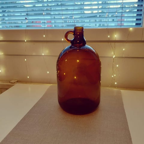 Pullo punoksella. Korkeus n. 19 cm ja tilavuus n. 1,25 dl.