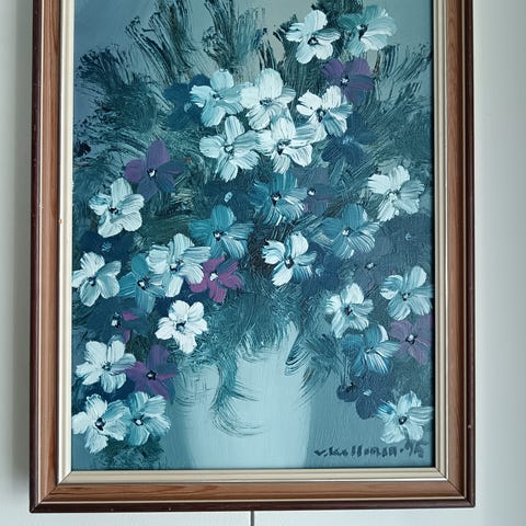 Myydään hyväkuntoinen Kallisen maalaama kukkataulu. Vain nouto tai tarvittaessa kuljetus lähialueelle Oulussa pientä korvausta vastaan.