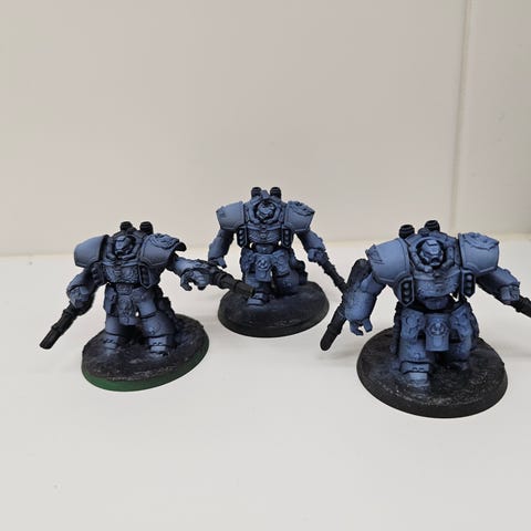 Flamerilla. Poistin tästä joskus maaleja ja vetelin päälle uudet basecoatit. Siihen se sitten jäikin