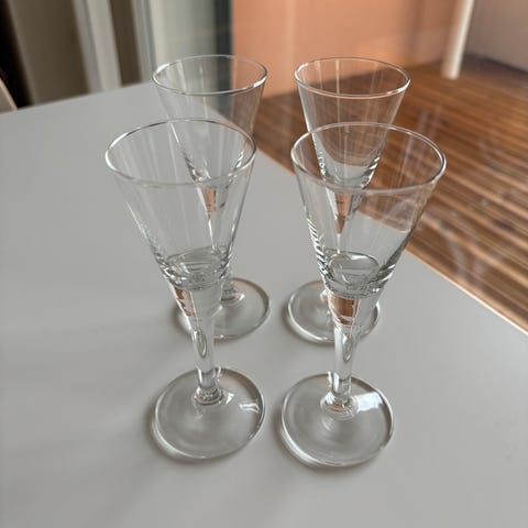 9.5cm korkeita snapsilaseja eteenpäin.Laseja 10 kpl.