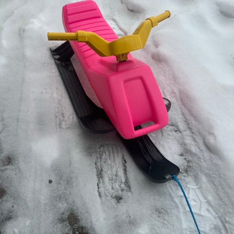 Plaston pinkki ohjattava kelkka.