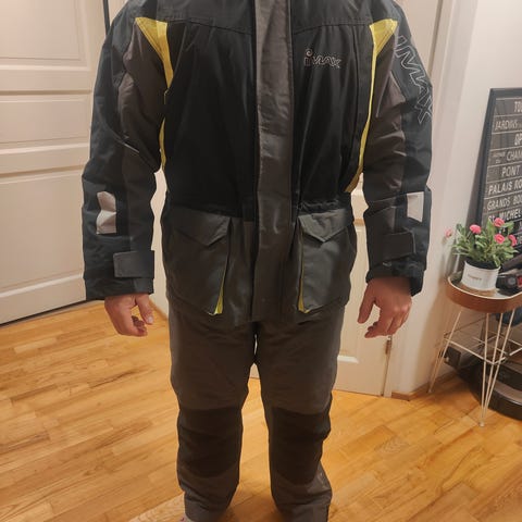 Siistit hyvin vähän käytetyt pakkashousut. Koko XL (58/60). Lämpöiset. Henkselit pitävät housut hyvin lämpöisenä. Edessä kaksisuuntainen vetoketju, eli saa auki ylhäältä ja alhaalta.
