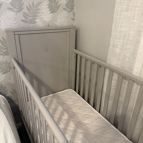 Sängyssä kiinni juniorilaita (valkoinen), mukaan myös täyskorkea laita (tumman ruskea) ja ikean vaahtomuovipatja (alle vuoden vanha), käytetty patjan suojusta ja pesty hajuttomalla pesuaineella. Ei lemmikkejä.