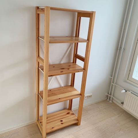 Lundia classic avohylly. Sisältää pystytolpat, kahdeksan hyllylevyä ja tukiristikon. Hyllyn kannatinnastat hankittava erikseen. Vain nouto.
