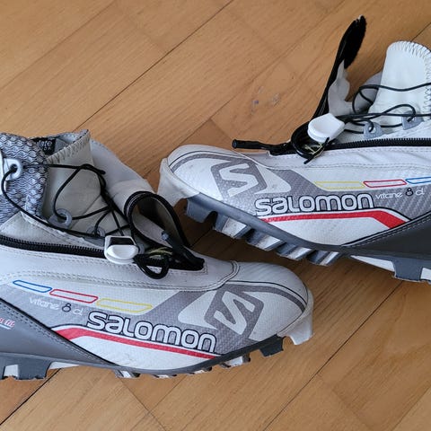 Salomon X-ADV 7 naisten hiihtomono, koko 39 (EU), valmistettu Romaniassa. Värit harmaa ja keltainen.