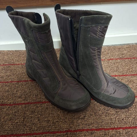 Naisten mustat goretex Legero varrelliset talvikengät. Sisällä karvavuori, sivussa vetoketju. Koko 4 (sisälle mahtuu tarvittaessa pohjallinen, jonka mitta on 24,5 cm). Kengät ovat todella hyvässä kunnossa, uudenveroiset. Jääneet käyttämättä, ehkä pari kertaa olleet jalassa. Ei tarjouksia.