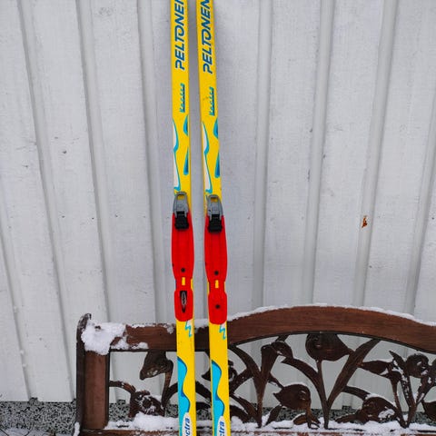 Peltosen sukset, pituus 147 cm ja Fischerin monot,