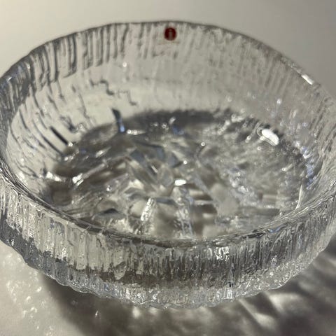 Tämä on Tapio Wirkkalan Iittalalle suunnittelema Lunaria-kulho, jota valmistettiin vuosina 1971–1992. Sitä valmistettiin eri kokoja, esimerkiksi 155 mm halkaisijaltaan olevaa versiota.