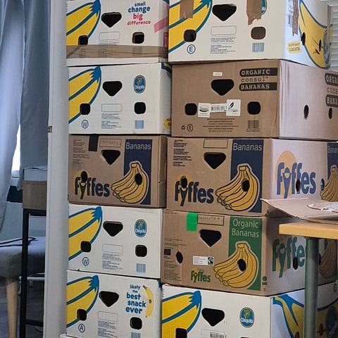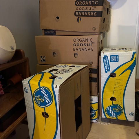 Vähintään 15kpl banaanilaatikoita noudettavissa. Olleet yhdessä muutossa. Säilötty kuivalla lasitetulla parvekkeella.