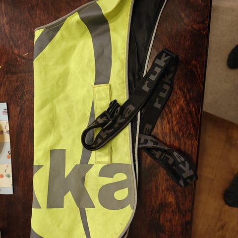 S-koko on ostettu mäyräkoiralle. Vähän saa karvoja mukaan.