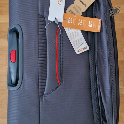 Pyörillä perässä vedettävä korkeus59cm Syvyys 22 cm Leveys 42 cm Alkuperäiset avaimet laukkkuun hyvin vähän käytetty