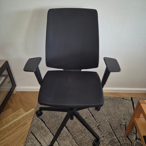 Synkro-mekanismi, lukittava keinu. Ergonominen kaksiosainen istuin. Musta alumiiniristikko pyörillä.