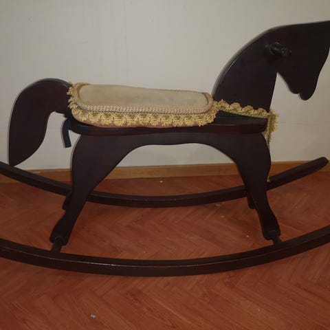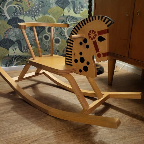 Myydään hyväkuntoinen keinuhevonen. Jalaksista löytyy kuvan mukaista kulumaa. Nimi on maalattuna mutta halutessaan on helppo maalata peittoon.
