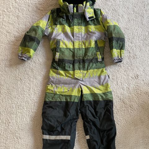Huomiovärityksellä oleva toppahaalari hyvin heijastimin. Lämmin edelleen. Hyvä käytetty kunto. Pesty kerran hajusteettomalla pesuaineella ulkovaate-syklillä myyntiä varten. Joitain pieniä tahroja vielä jäi.