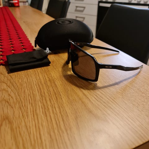 Oakley Sutro Lite urheilulasit/aurinkolasit kultaisen sävyisellä pinnoitteella. Linssi itsessään ruskea. Mukana on suojaava kotelo.
