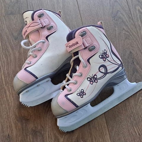 Reebok Glittergirl lasten luistimet koko 30, vaaleanpunainen väri, perhoskuviot.