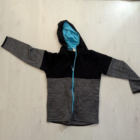 Lasten tummanharmaa huppari/fleecetakki. Hyvässä kunnossa. Kokoa 150.