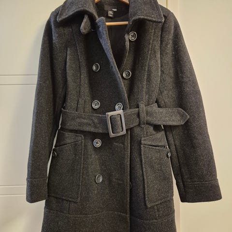 Naisten villakangas (65 % villaa, 25 % viskoosi, 10% polyesteri) mielestäni hyvin naisellinen malli (kts.esim. eturypytykset) koko 40 )lähempänä 38 kokoa. Mitat kainalo-kainalo noin 48 cm, hartialinja noin 41 cm, koko pituus noin 95 cm. Väri suklaan ruskea. Ei ole ollut montaa kertaa käytössä:)