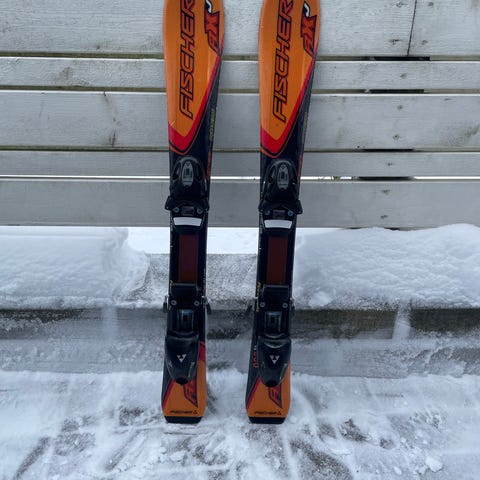 Fischer 90cm laskettelusukset ja 75cm sauvat. Siteet ja pohjat vielä hyvässä kunnossa. Hyvät ensisukset lapselle.